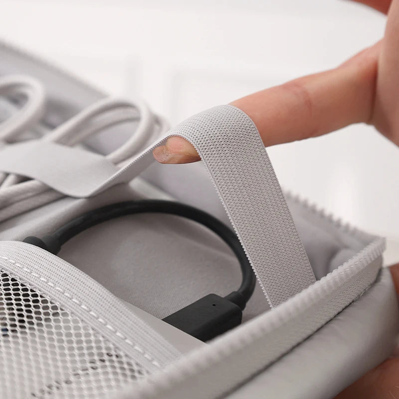 Stylish, lightweight, waterproof travel organizer for electronics, cables, makeup, and cosmetics.